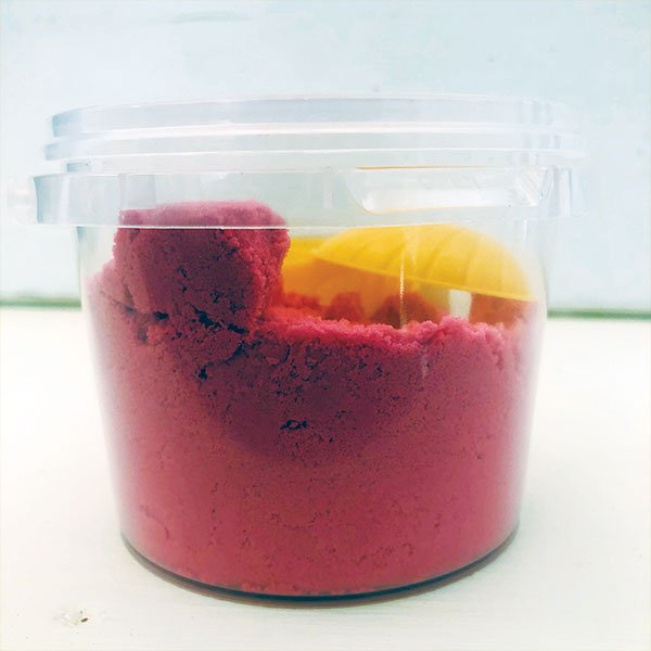 incluye 500 gramos de arena mágica fucxia