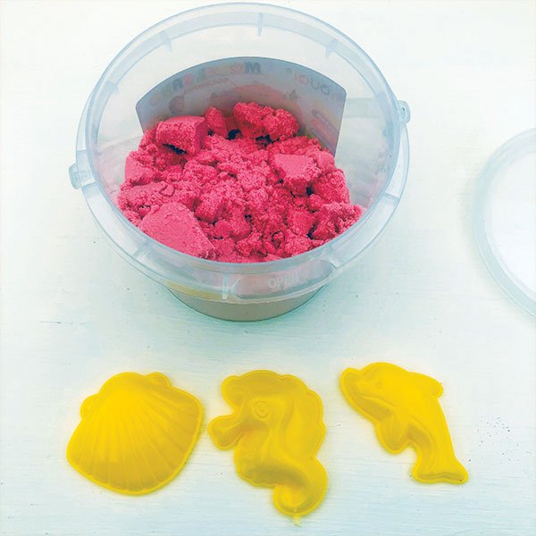 Set de Arena Mágica para moldear y crear todo lo que se les ocurra, como si estuvieran en la playa. No es tóxica, no mancha, no se seca y no se pega.